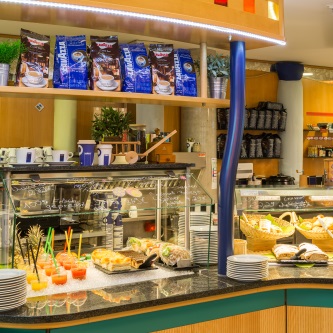 Genießen Sie bei uns eine kleine Pause auf der Sonnenterrasse, lassen Sie sich von einer Tasse Lavazza Kaffee verwöhnen oder stärken Sie sich mit unserem täglich frisch zubereiteten Speisenangebot: